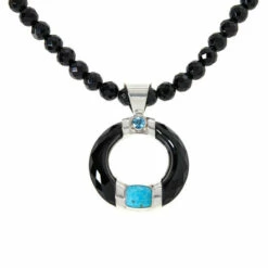 Promo 👍 Mine Finds By Jay King Jay King Black Chalcedony, Turquoise & Blue Topaz Pendant-Necklace ⭐