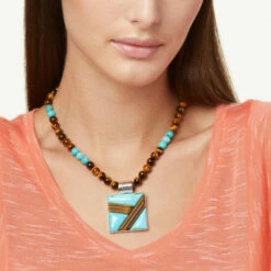 Best Sale ✨ Mine Finds By Jay King Jay King Tiger Eye And Sonoran Turquoise Bead Pendant-Necklace ⌛