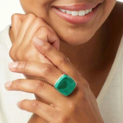 Deals ๐ Mine Finds By Jay King Jay King Sterling Silver Green Malachite Cushion-Cut Ring โ๏ธ