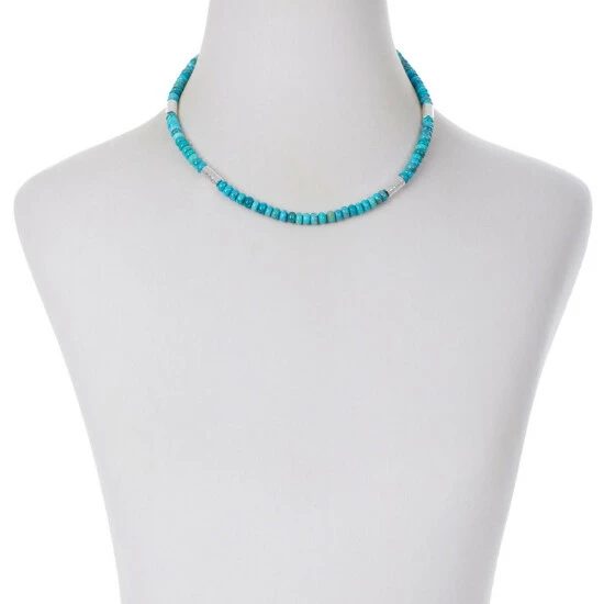 - Stabilized Angel Peak Turquoise – Rondelle (6x4mm); mined in Chile
