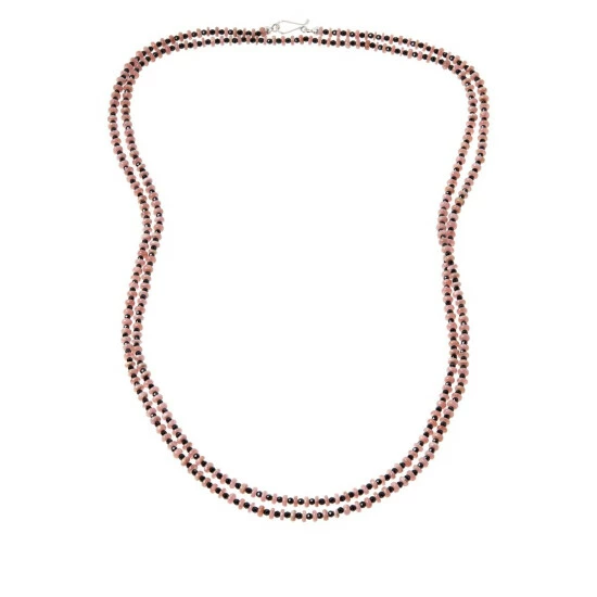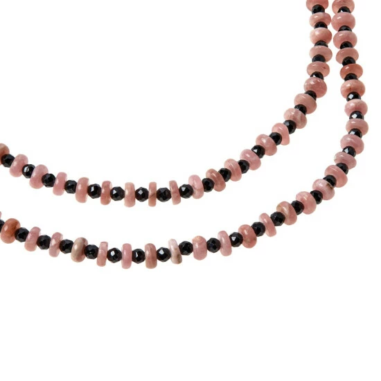 This stunning necklace includes natural, custom-cut rhodochrosite beads accented with faceted black spinel.The extra-long length gives you plenty of styling options. Try doubling it up, adding a favorite pendent or layering it with other Jay King favorites.