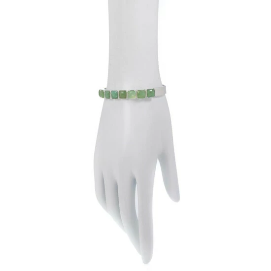 - Sterling silver band-style cuff bracelet has 8 cushion-cut green chrysoprase stones across top
