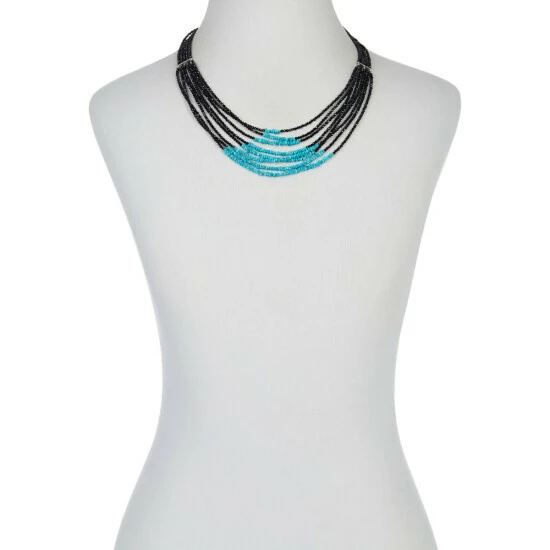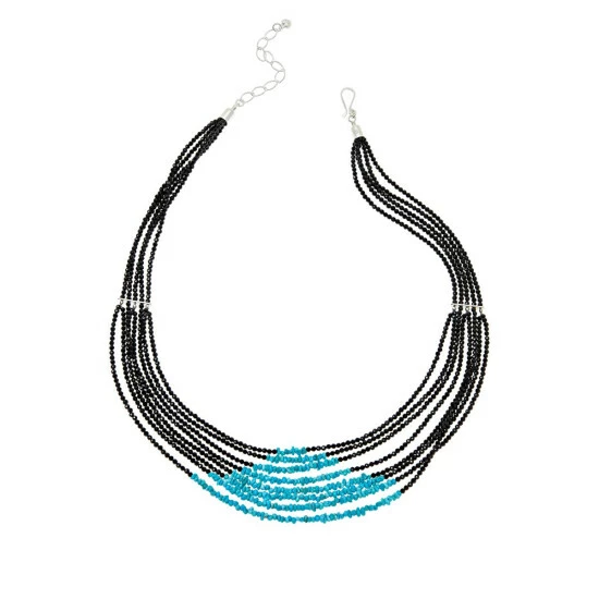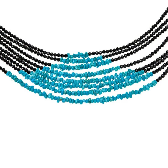 Make a stand-out style statement when you wear this bold, multi-layered black spinel and Turquoise bead necklace. Tiny black and blue-green gemstone beads strung in lush layers create an elegant, yet laid back vibe.