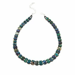 - Reversible necklace has tab-shaped gemstone doublet stations with faceted, black tourmaline on one side and multi-color abalone shell on the other