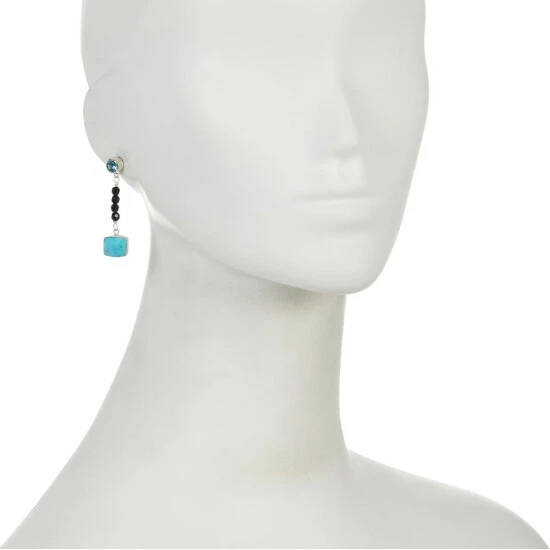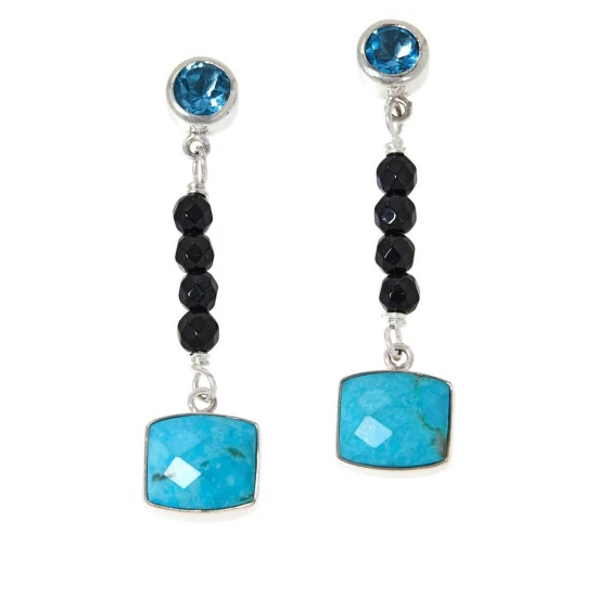 Jay King Blue Topaz, Turquoise and Black Chalcedony Drop Earrings