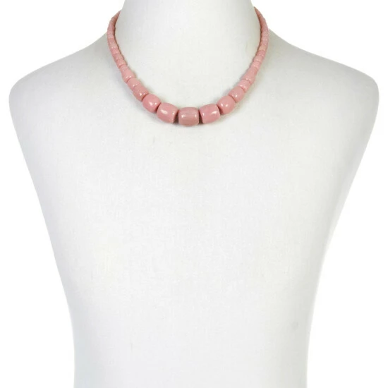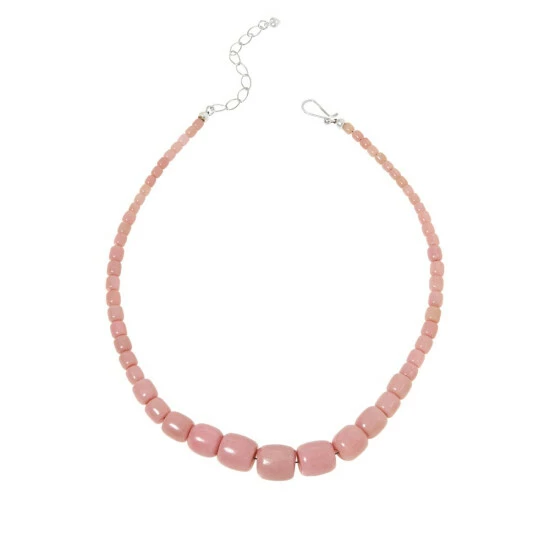 Pretty pink “Cameo Mauve Stone” beads strung together in aslight, graduating necklace profile, create a fun, flirty jewelry accent that’s easy to dress up or down. From Jay King.