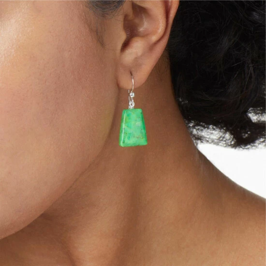 - Sterling silver drop earrings with freeform lemon-lime green turquoise cabochon