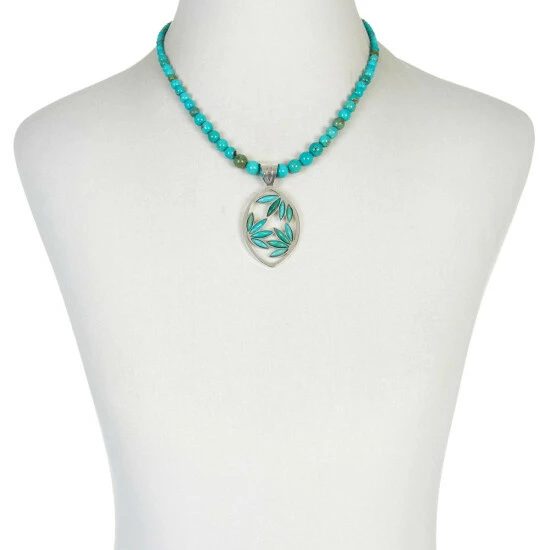 An artistic design paired with a delicate Mexican turquoise make this sterling silverpendant and beaded necklace a chic, stylish addition to your accessories collection.From Jay King.