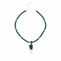 Go green with this lovely malachite beaded necklace with freeform pendant. It’s a “must-have” for your wardrobe.
