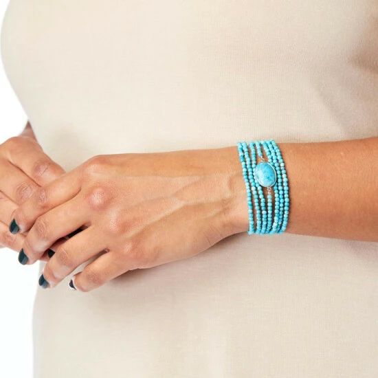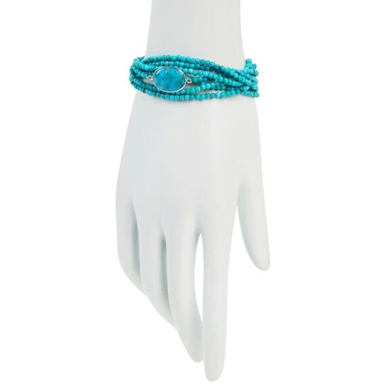Bring a bold pop of gemstone color to your wrist with your choice of gemstones from around the world. This handcrafted bracelet features seven strands of beads with a matching oval cabochon at center. Plus, an exclusivemagnetic closure eliminates the fumblingfrustrations of traditional bracelet clasps. From Jay King.