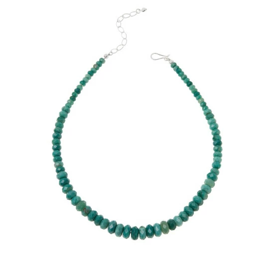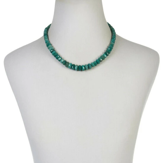 - Necklace has faceted, rondelle-shaped beads of green chalcedony strung in graduating profile