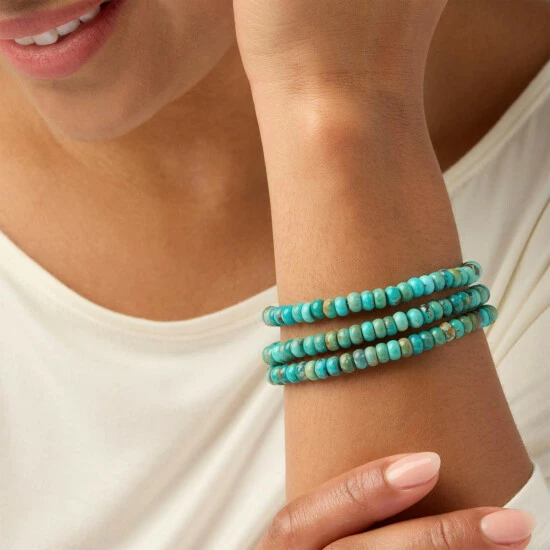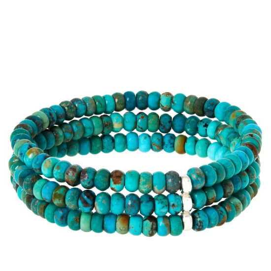- Stretch bracelet has three strands of rondelle-shaped turquoise beads
