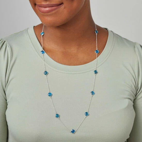 Beautiful, indigo-blue apatite stones from Madagascar give this simple chain necklace an elegant pop of genuine gemstone color. Its longer length is great for layering or to wear as a single statement piece. From Jay King.