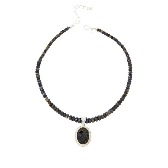Jay King Oval Blue Iolite Pendant with Rondelle Beaded Necklace