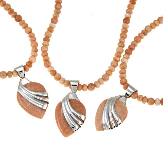 The island of Madagascar may be known for its exotic wildlife, but it’s also home to its share of unique gemstones. The unusual, peach-colored stones used in this reversible pendant and necklace duo are found exclusively in Madagascar. You can wear this pendant alone or on the coordinating necklace for looks that will leave you feeling pretty as a peach!