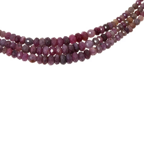 - Necklace has three strands of faceted, round, red ruby beads, in layered silhouette