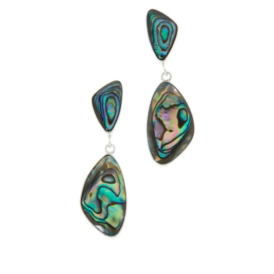 - Sterling silver earrings have freeform drops of bezel-set, multicolor abalone shell