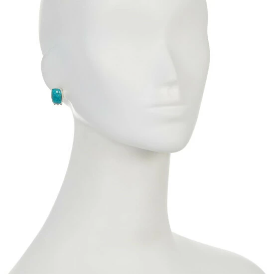 - Sterling silver earrings have cushion-cut blue-green turquoise bezel-set on post fronts