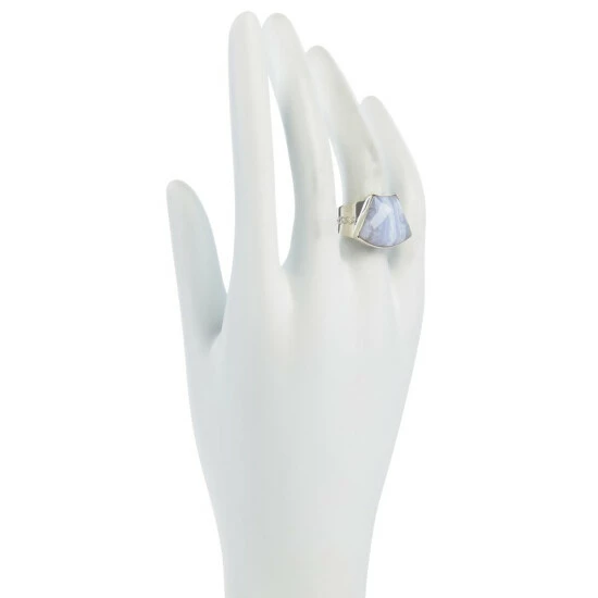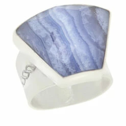 Accesorize a favorite outfitwith this handcrafted sterling silver gemstone ring. It features blue lace agatefrom South Africa and highlights the natural banded patterns of this beautiful stone. Presented by Jay King.