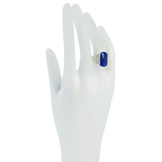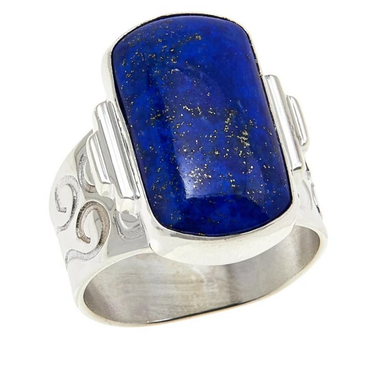Accentuate your favorite outfits with this beautiful sterling silver and lapis ring.It features agenerous-sized, blue lapis stone and scroll-shaped accents for a big, bold look on any finger!From Jay King.