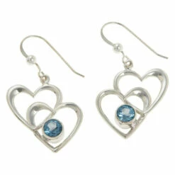 Bring out your inner romantic when you accessorize with thesetrendy, double heart earrings. A sparklingblue topazframed in polished sterling silver hearts, makes these drops a great choice for fun, fashionable dressing.