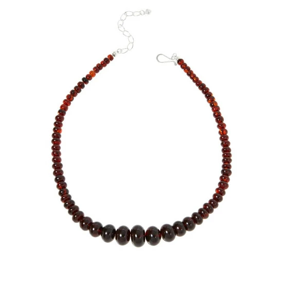 Jay King Sterling Silver Brown Amber Graduated Rondelle Bead Necklace