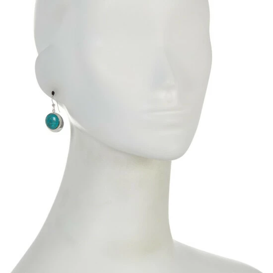 - Sterling silver earring drops have round, green chrysocolla cabochons bezel-set in polished frames