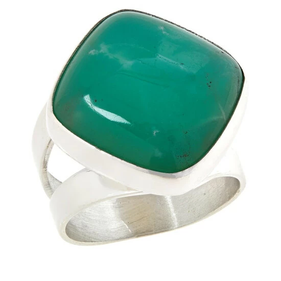 BeautifulgreenAustralian chrysoprasein an elegant cushion-cut,makes this handcrafted sterling silver ring one you can wearevery day!From Jay King.
