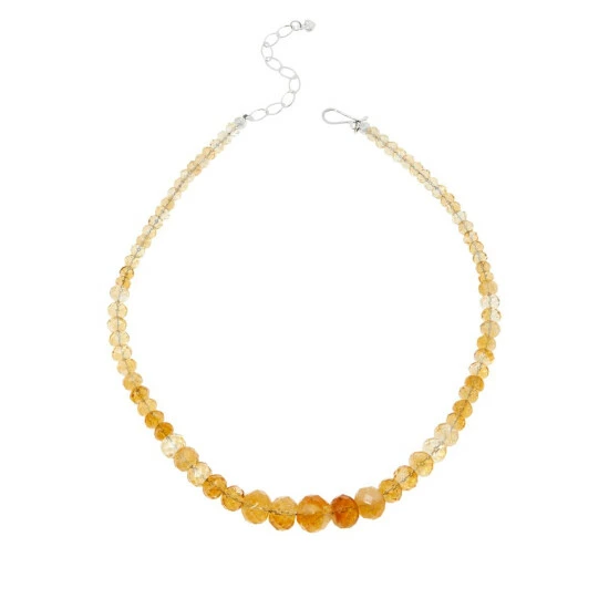 - Necklace has faceted, rondelle-shaped yellow citrine beads strung in graduated profile