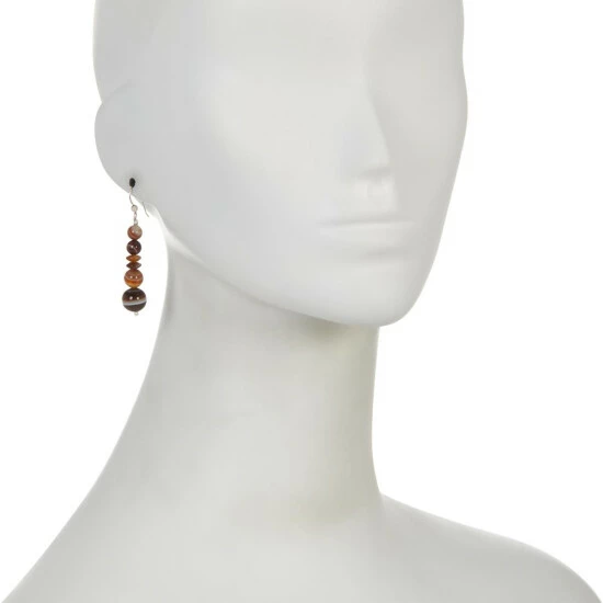 - Sterling silver earrings each have six multi-shaped, multicolored brown, banded chalcedony beads stacked together