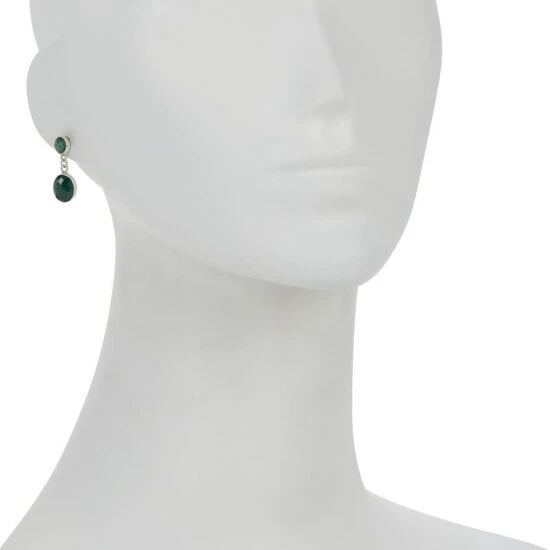 - Earrings have oval-shaped emerald drops connected to round emerald post fronts