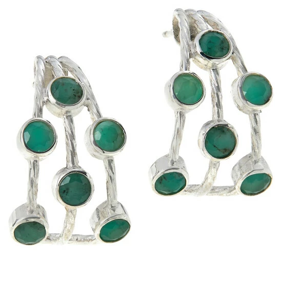 Jay King Sterling Silver Emerald Multi-Stone J-Hoop Earrings