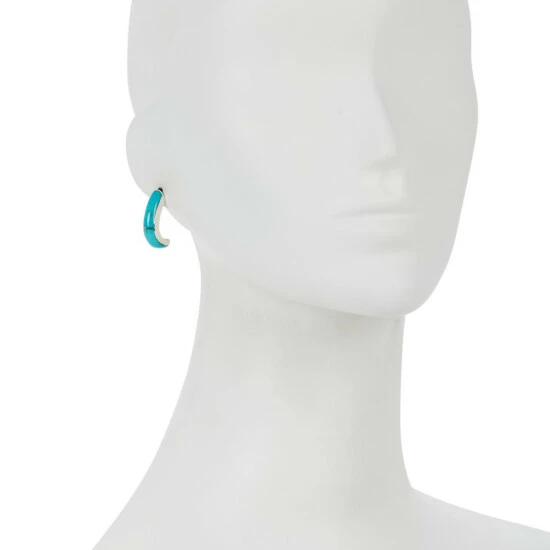 - J-hoop earrings have curved, colored gemstones with sterling silver accents