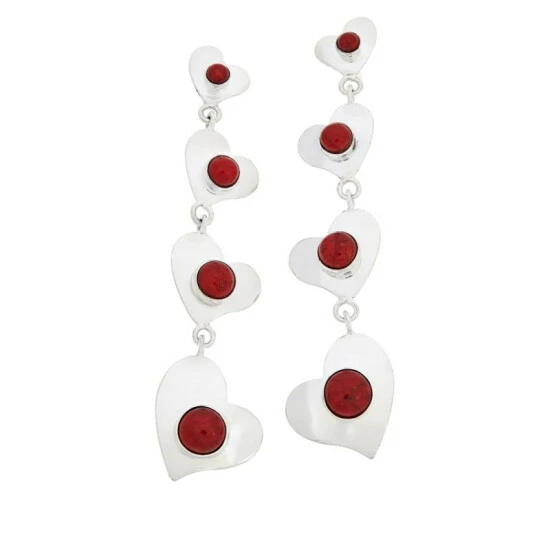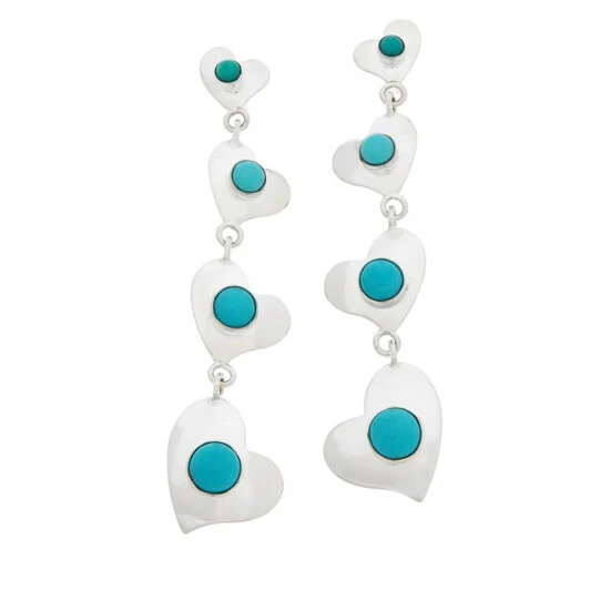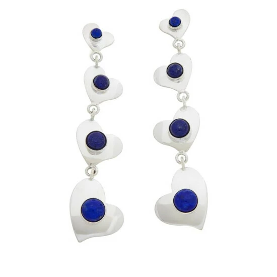 Dangling silver hearts adorned with your choice of colorful gemstonesmake these handcrafted earrings a fun, fashionable accessorizing option any time of the year!From Jay King.