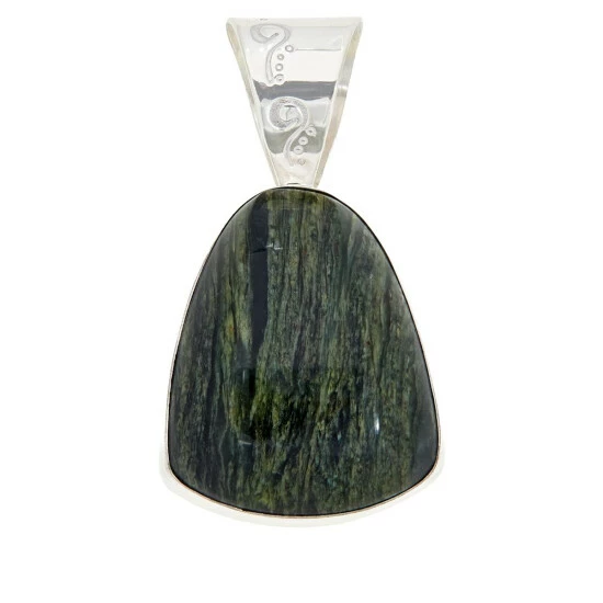 Bands of gorgeous green color in this new Mine Find from Jay King make this handcrafted sterling silver “Dragon Mountain” stone pendant stand out from the crowd.