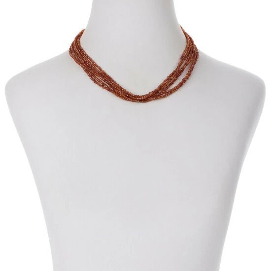 - Necklace has round, faceted beads of hessonite garnet strung in six strands and capped with sterling silver end caps