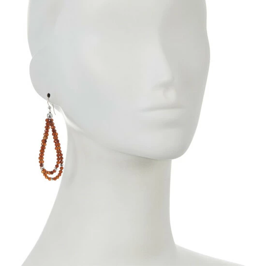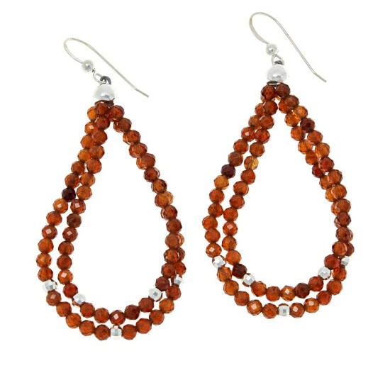 - Earrings have two strands of round, faceted brown hessonite garnet beads strung on pear-shaped, open-wire drops