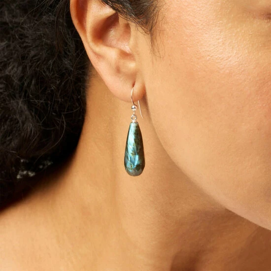 An elongated shape and hand-cut facets help these lovely labradorite drop earrings make an elegant style statement any time your wear them. From Jay King.
