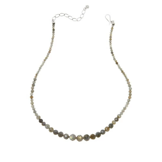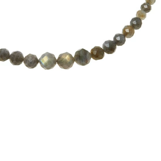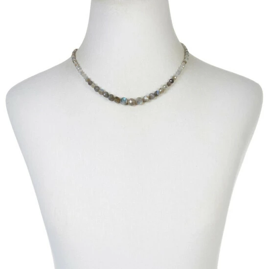 - Necklace has faceted, light gray labradorite beads strung in graduating profile