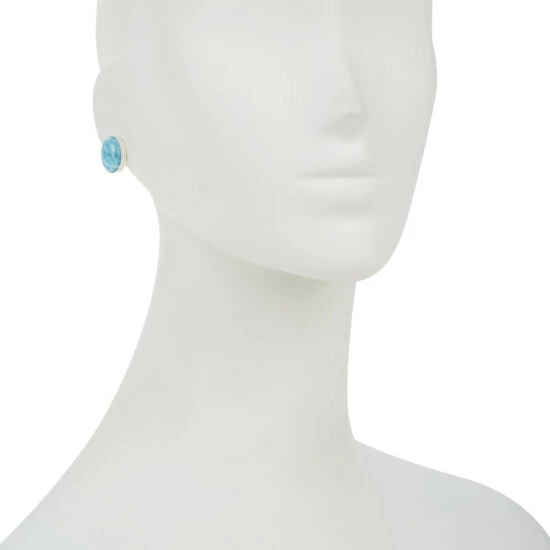 - Sterling silver earrings have oval larimar cabochons bezel-set on post fronts