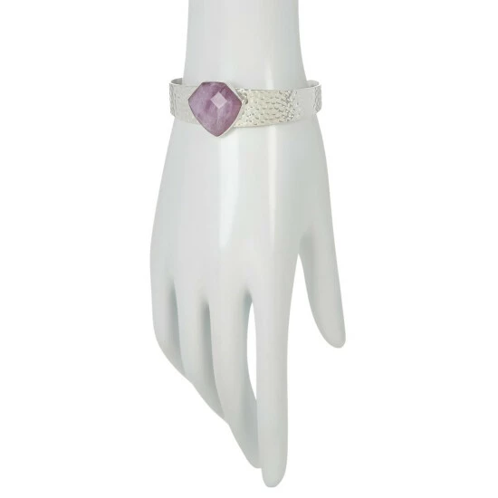 A lovely, lavender-colored kunzite stone from Nigeria and handsome, hammered texture give this sterling silver cuff bracelet a chic, artistic vibe. From Jay King.