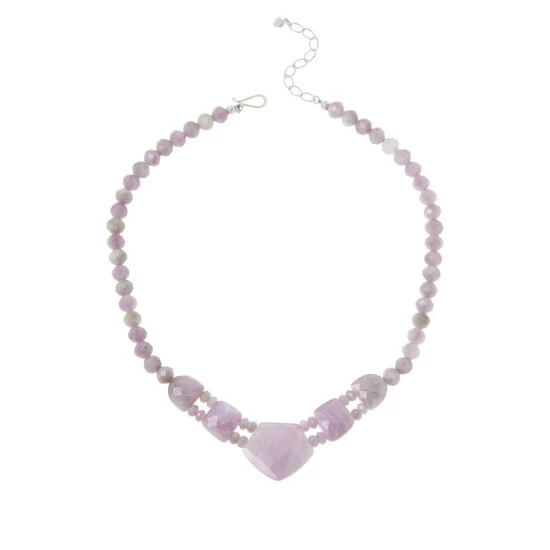 Adorn your neckline with the sweet, subtle colors of lavender kunzite. This beautiful necklace design from Jay King features faceted lavender kunzite, a new Mine Find from Nigeria.