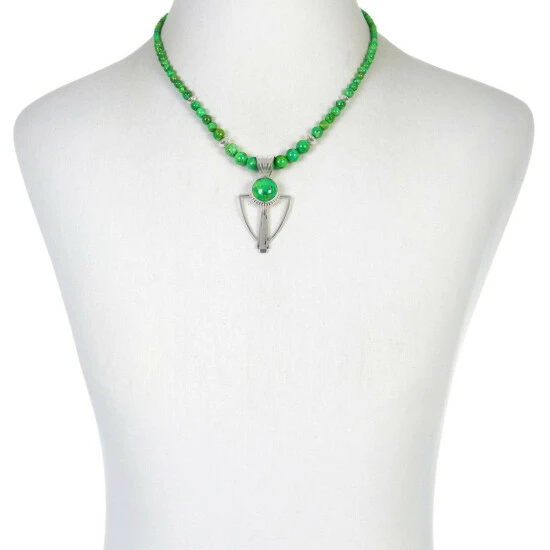 Luscious lemon-lime green turquoise set into a chic, contemporary design, makes this pretty pendant and beaded necklace combo a chic, colorful choice for fun, summertime accessorizing. From Jay King.