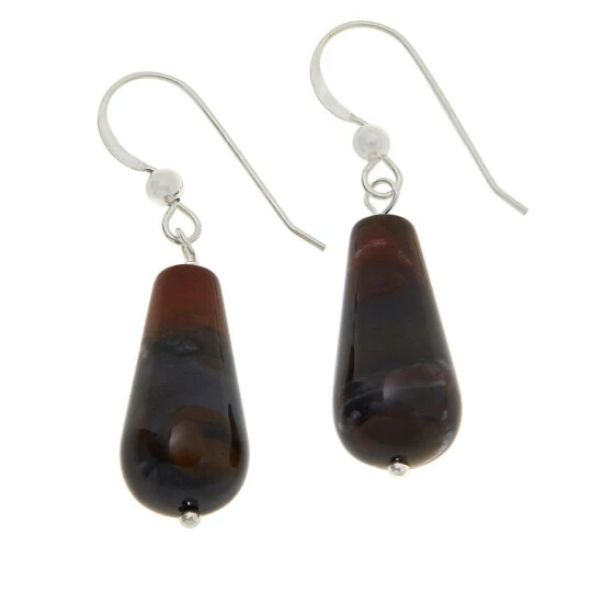 Jay King Sterling Silver Multi-Color Petrified Wood Drop Earrings