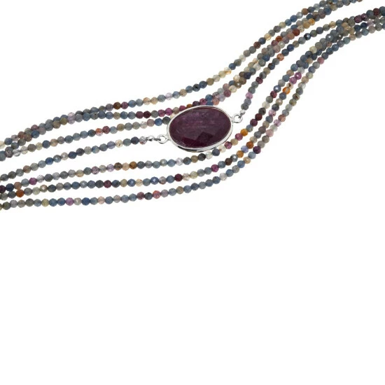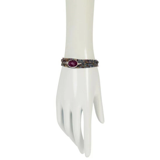- Multiple strands of pink, yellow and blue sapphire beads complete bracelet