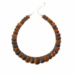 - Necklace has multicolored U-shaped beads of Desert Sunset stone strung in slight graduating profile