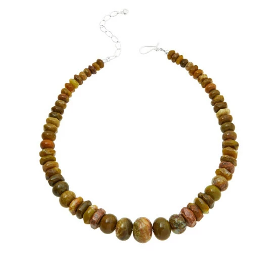 Unique volcanic opal from Madagascar displays varying shades of green, brown and yellow in this simple, yet chic beaded gemstone necklace from Jay King.