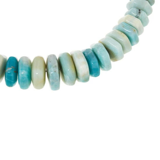 - Necklace of freeform stabilized quartzite hexagonal beads; strung on SoftFlex