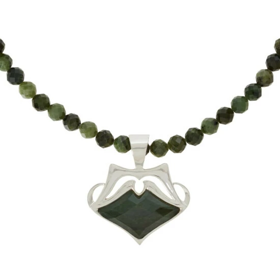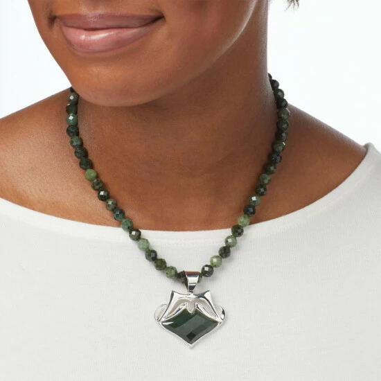 This chic, contemporary-style pendant features dark green nephrite jade from Pakistan in a distinctive, faceted cut. Wear it on a favorite chain or with the included, coordinating bead necklace.