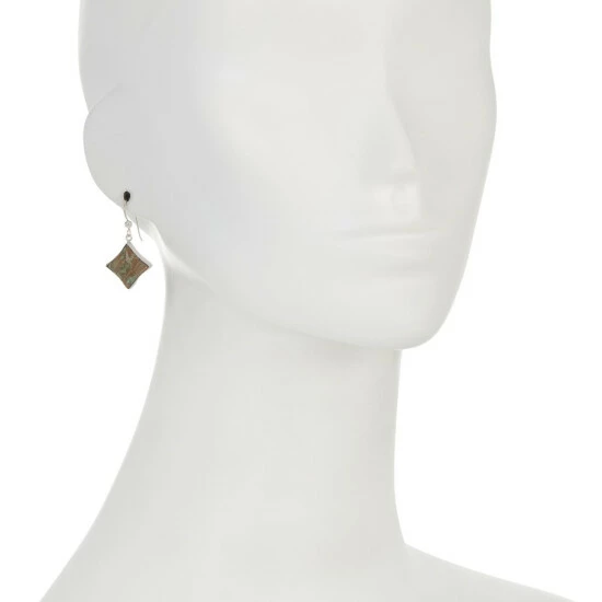 - Sterling silver earrings have diamond-shaped drops of bezel-set, multicolored brown/green nunderite